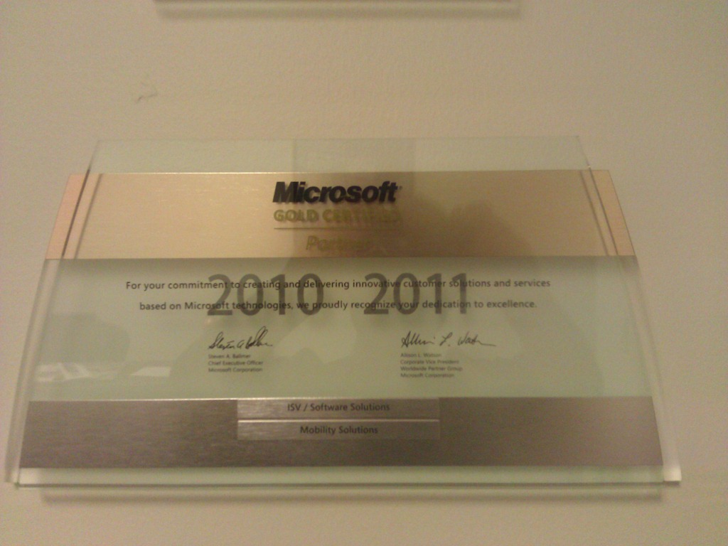 MS合作ISV的牌子,2010-2011,是金的