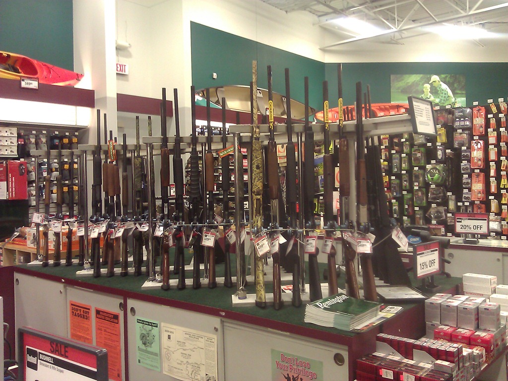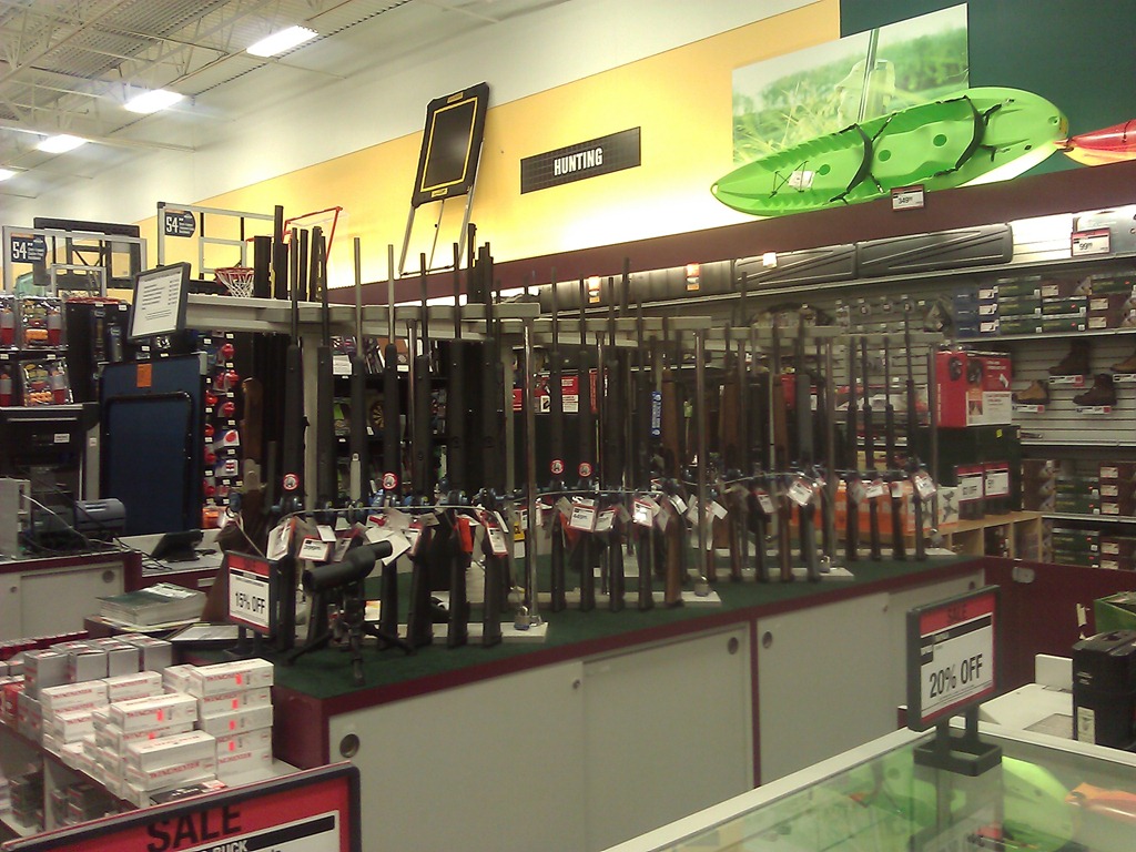 这是某个体育用品超市里面卖枪的专柜