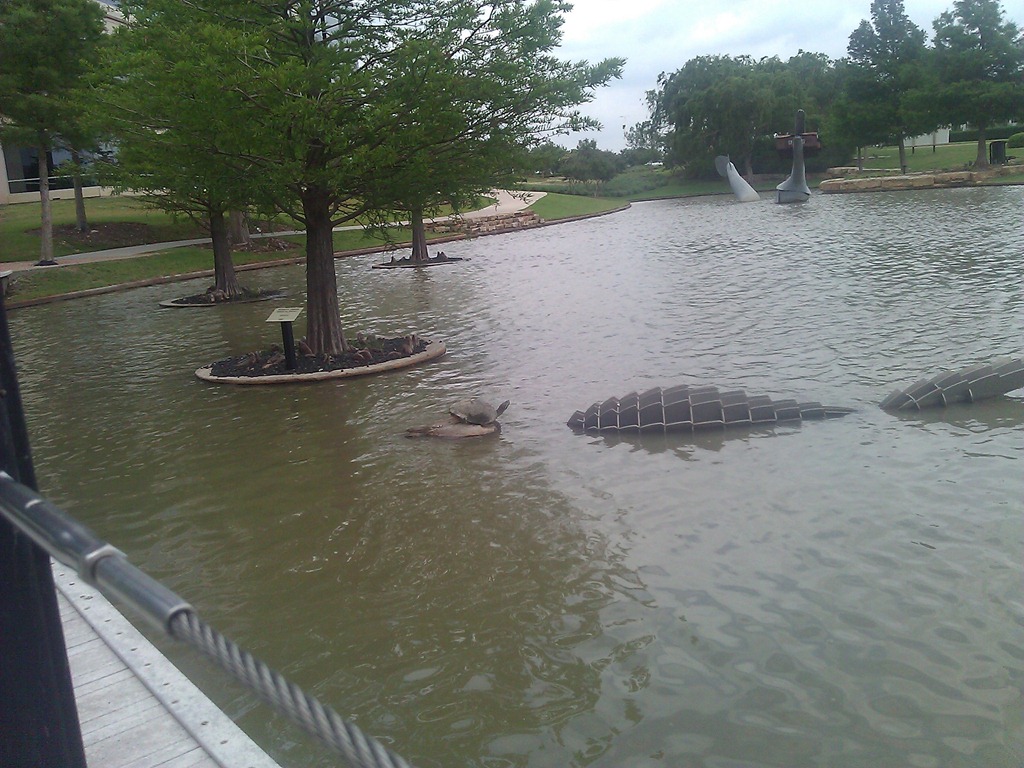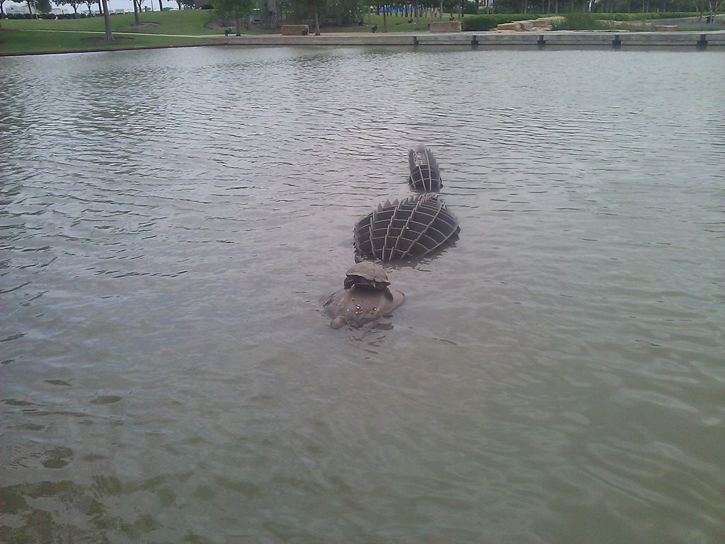 书接上回,这是公司楼下湖里的一条鳄鱼,到了中午鳄鱼头上还趴着一只晒暖儿的老龟